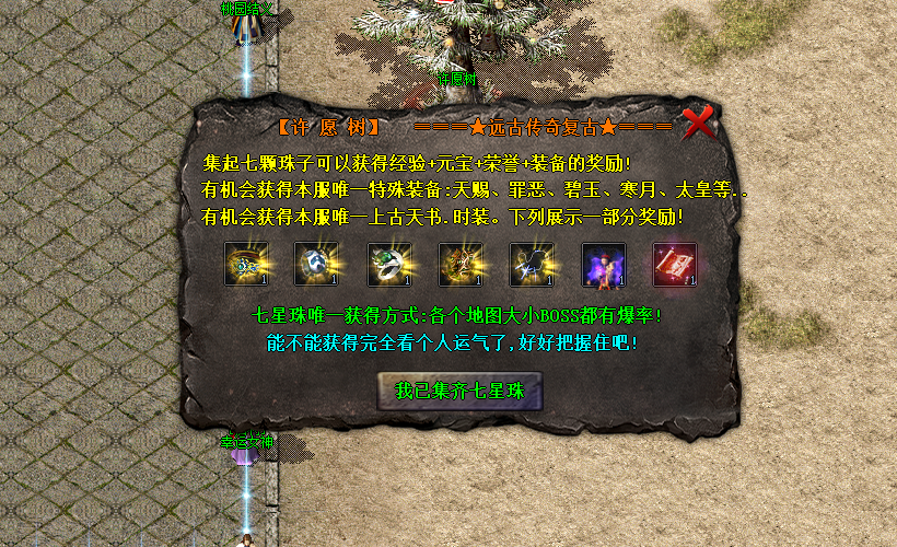 【远古传奇】 开区时间:每天00点10点13点16点20点开放,提前两小时开测试